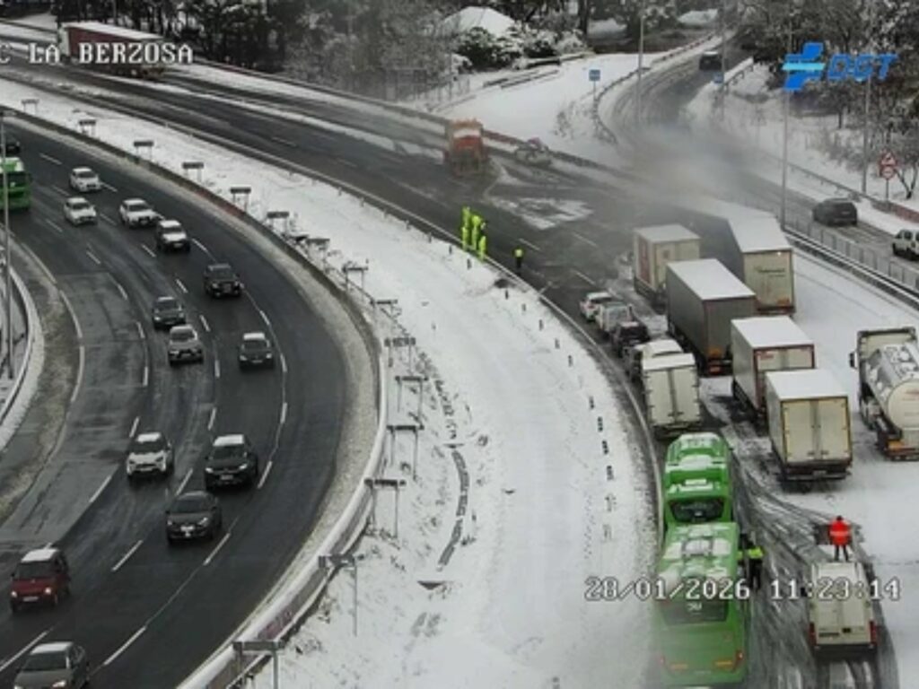 En la red principal, a las 10:45 horas, se registraban incidencias en 9 carreteras, destacando la A-66 en la provincia de Cáceres en sentido Salamanca, la A-50 a su paso por Ávila, la A-1 en La Asperilla y Somosierra, y la A-6, donde se han producido embolsamientos de vehículos en la zona de Torrelodones. En la Comunidad de Madrid es obligatorio el uso de cadenas o neumáticos de invierno en puertos como Somosierra y en vías como la M-607 en Colmenar Viejo, mientras que se ha prohibido el acceso a camiones por la M-40 en la zona de Montecarmelo.
